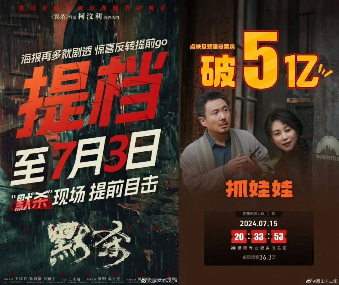 今年暑期档的前半程,《海关战线》《传说》等种子选手相继扑街,眼看票房大盘越来越冷,《默杀》选择提档上映、《抓娃娃》开启大规模点映,这叫做审时度势的“救市”。