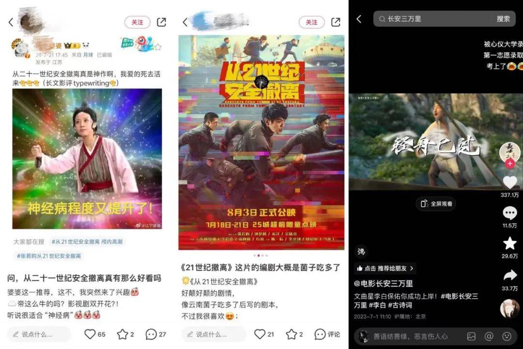 其次,点映时也少不了营销配合与口碑维护。《长安三万里》点映的时候,就流出了大量中小学生影院“背诗”短视频,给网友留下深刻印象。