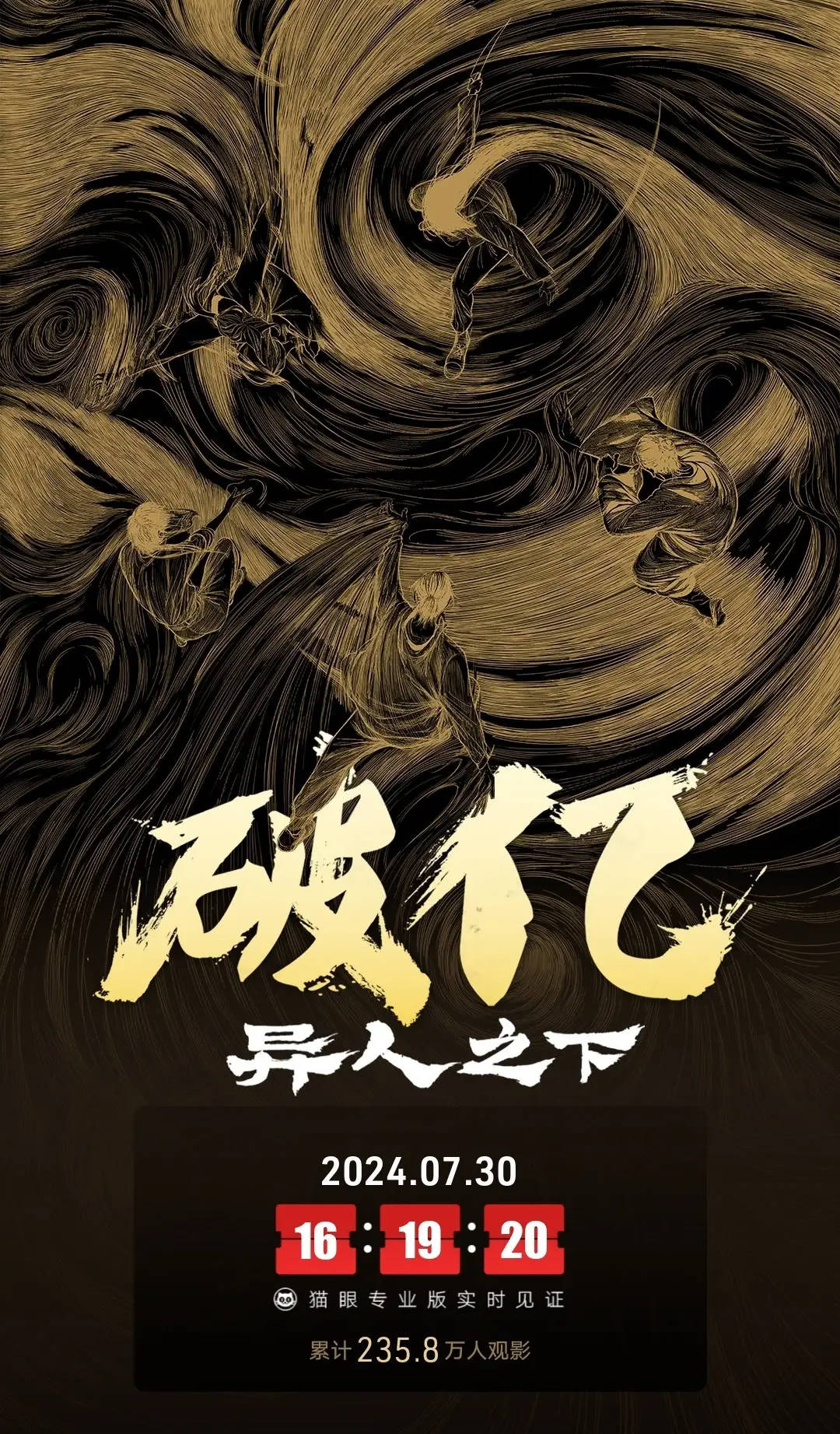 搜狐娱乐讯 据猫眼专业版数据,截至7月30日16时19分,电影《异人之下》上映5天 ,总票房突破1亿,累计235.8万人观影!