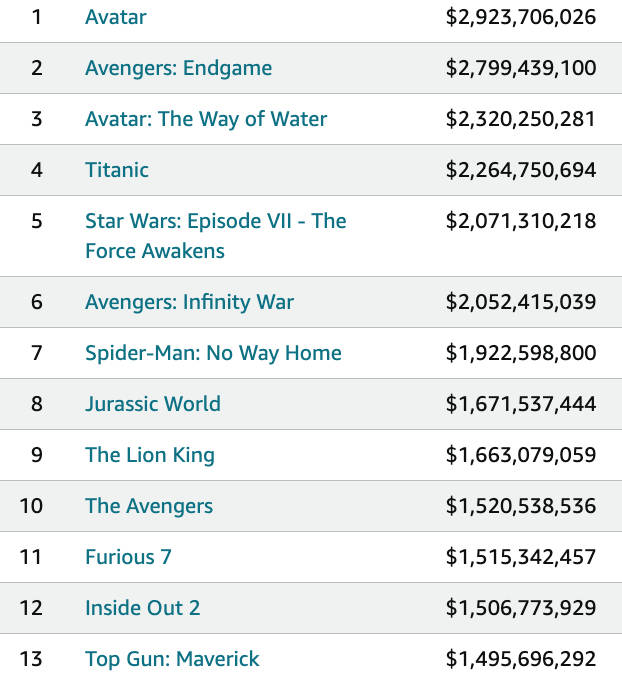 《头脑特工队2》全球累计票房15亿美元超越《壮志凌云2》升至影史票房榜第12名 - 超景影院