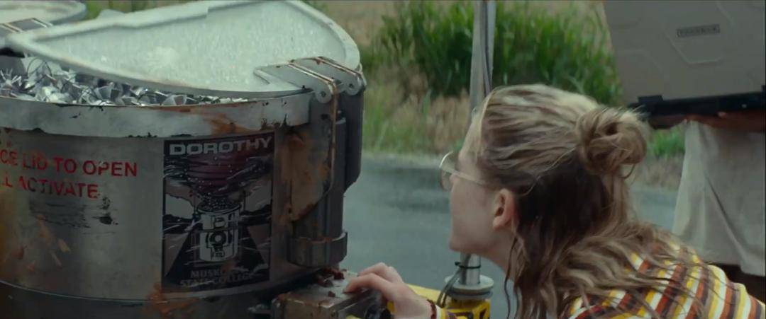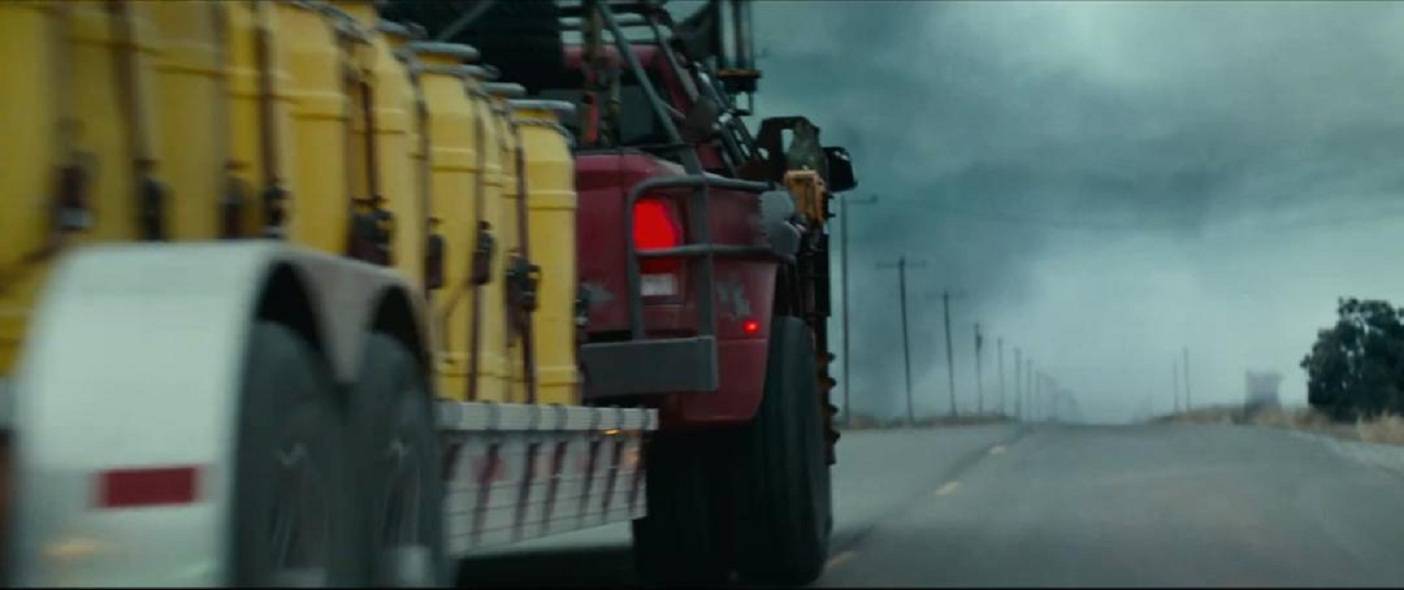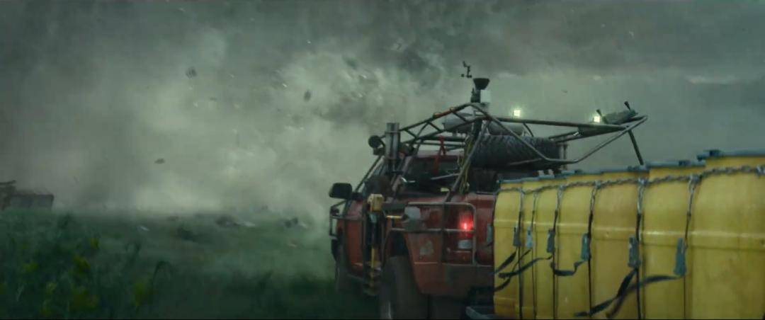 到了结尾部分,当5级龙卷风来袭时,哈维和泰勒带领小镇民众躲藏在电影院中,凯特却选择独自驾车驶入风暴中,用她的发明正面硬刚龙卷风。