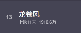 但在我们内地,《龙卷风》上映11天,票房刚超过1900万,妥妥的炮灰片。