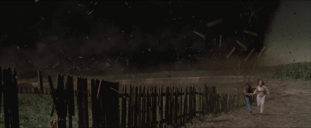邦特导演只好“省着用”,用密集的人物故事填充大部分片长,龙卷风出现的画面少得可怜,且大部分时间都“神龙见首不见尾”,直到影片最后才弄一场大的龙卷风大戏。
