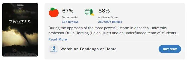 留意《龙卷风》的英文片名,96版是用单数的“Twister”,而新版《龙卷风》则是用了复数的“Twisters”。