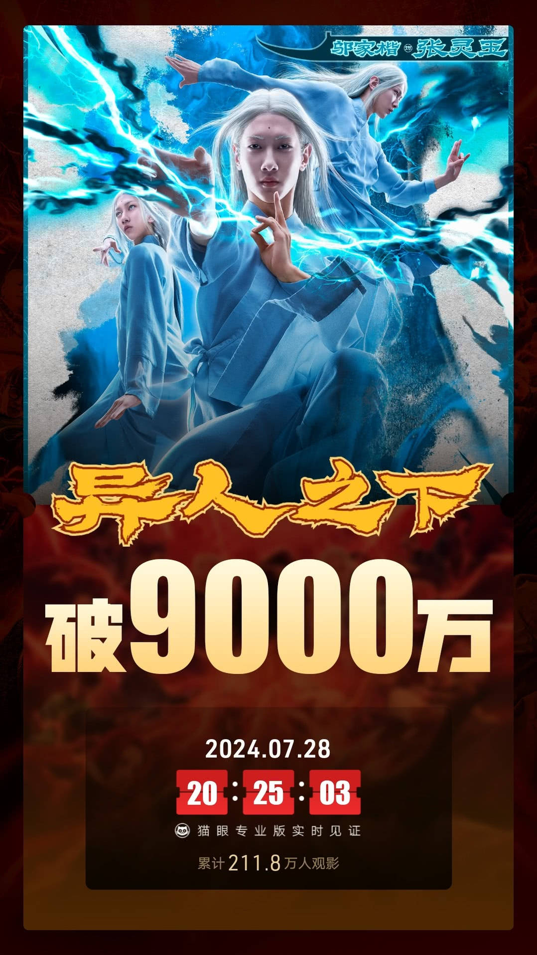 乌尔善执导热门奇幻动作IP电影《异人之下》首周三天进账9132.66万位列第四,豆瓣评分6.3,口碑票房均不及预期;