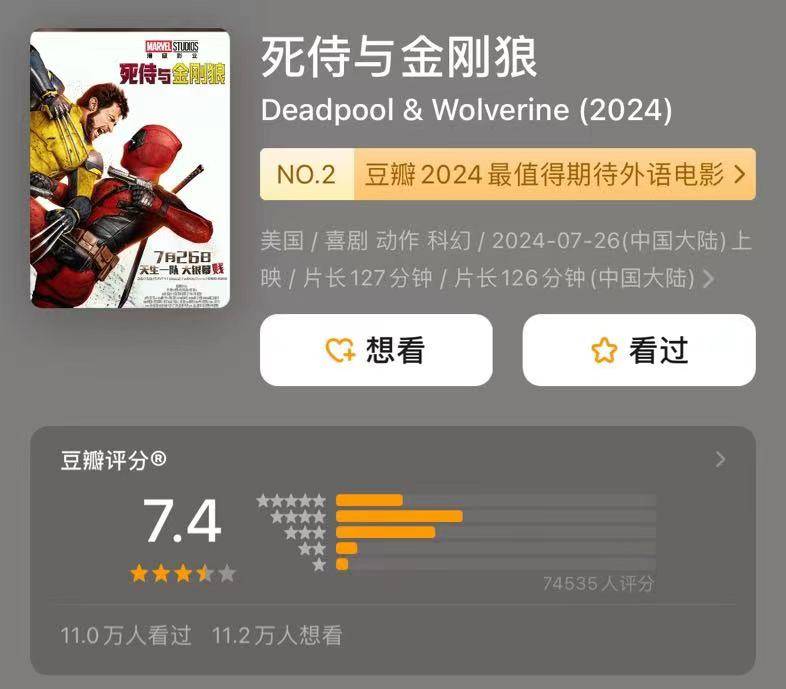 口碑方面,《死侍与金刚狼》在IMDb上斩获8.3的高分,在豆瓣上也有7.4分。按照这个势头,《死侍与金刚狼》的最终票房成绩很有可能会达到10亿美元。