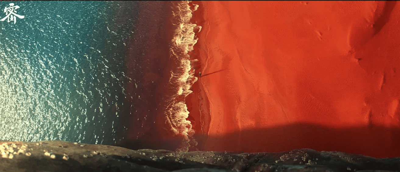 退一步说,就算是模仿、学习,也没毛病。诺兰是站在电影创作顶峰的导演,犹记《奥本海默》上映时,大鹏看过电影说自己“很沮丧”,因为差距太大了。《解密》代表的是当下国产电影最高的制作规格和工业标准,电影不但有大量特效镜头,也用了大量实景和置景,红色沙滩短短的一段镜头,就耗时三个月,将沙子上色、固化,以及造浪,并用大规模的灯组人造出太阳,这样的制作水平呈现出魔幻、瑰丽的梦境,带给观众奇特的视觉体验。