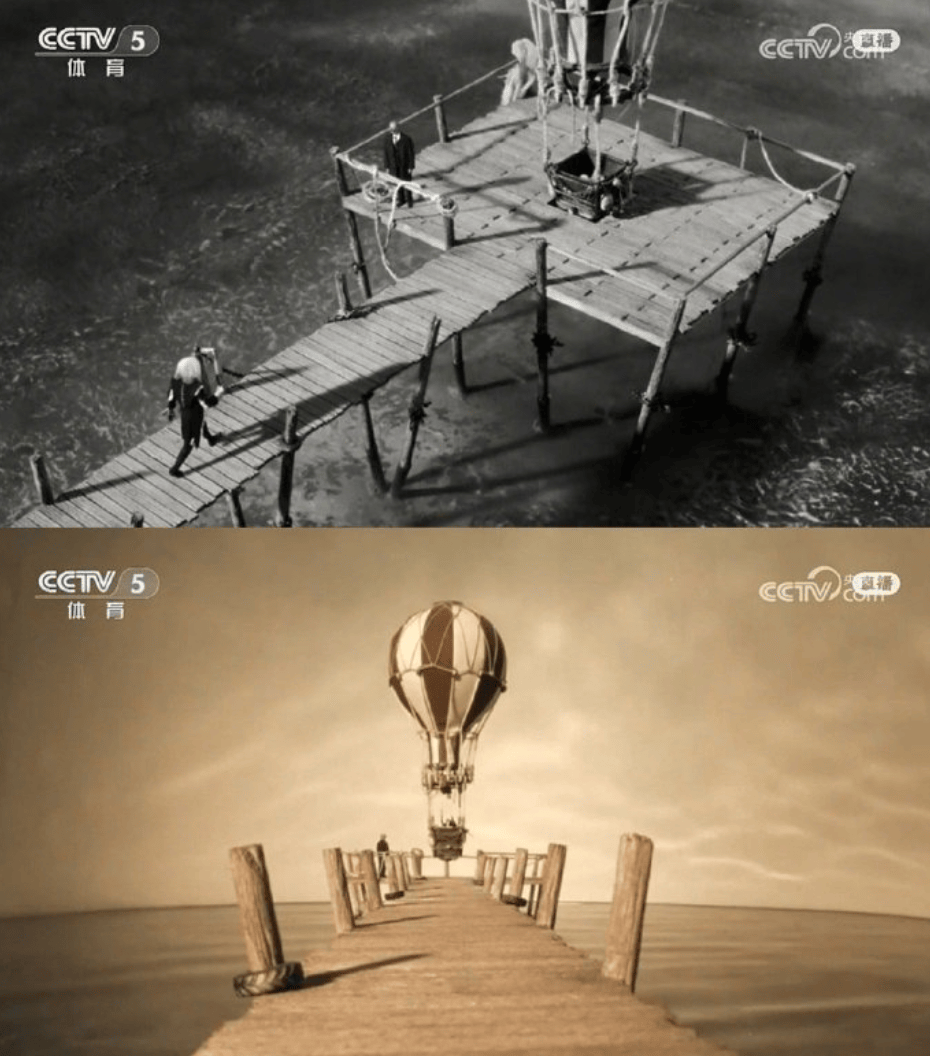 热气球的元素,是致敬儒勒·凡尔纳的《八十天环游世界》,这部小说为电影领域提供养分,被多次改编。