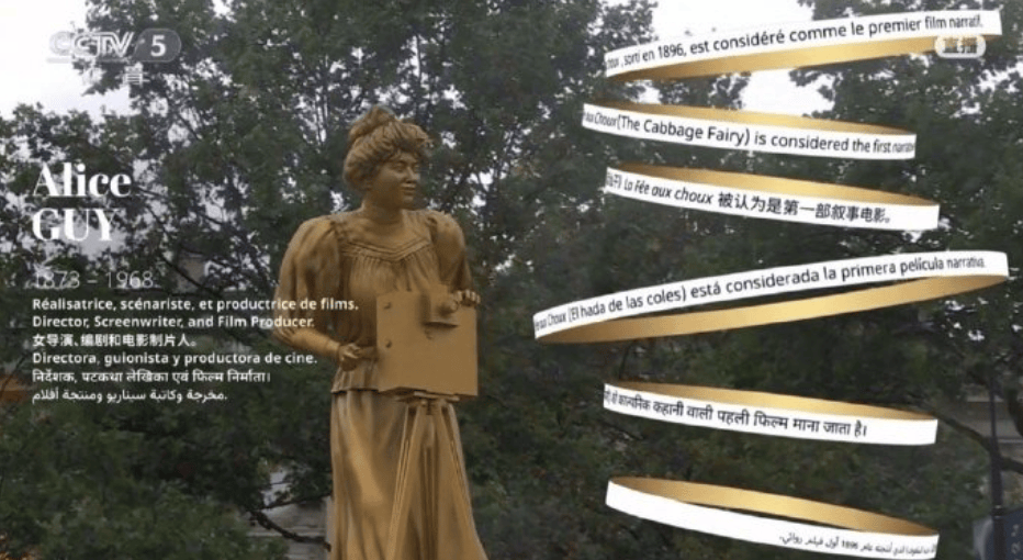爱丽丝·盖伊不是电影名字,而是导演名字,她创作的《甘蓝仙子》片长只有50秒,1896年和观众见面,被誉为是第一部叙事电影,而爱丽丝·盖伊也是名副其实的世界上第一位女导演,算是法国的骄傲,所以开幕式给出了她的雕像镜头。