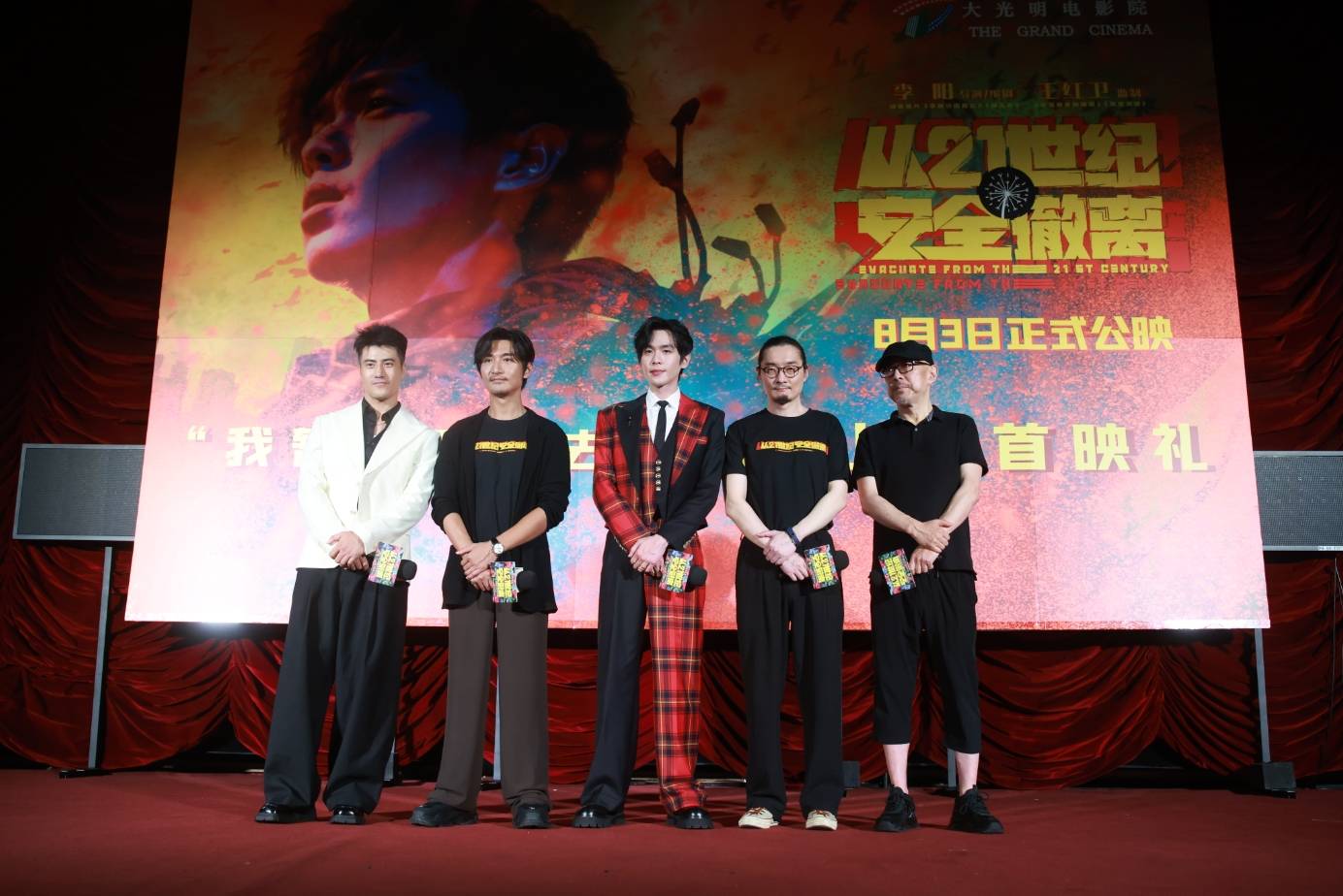 搜狐娱乐讯(马蓉玲/文 sh/图)7月26日,电影《从21世纪安全撤离》在上海举行首映礼,监制王红卫、导演李阳携主演张若昀、宋洋和李晨浩亮相,在映后与观众开心互动。当天,徐峥和马思纯也来到现场,为该片卖力吆喝。