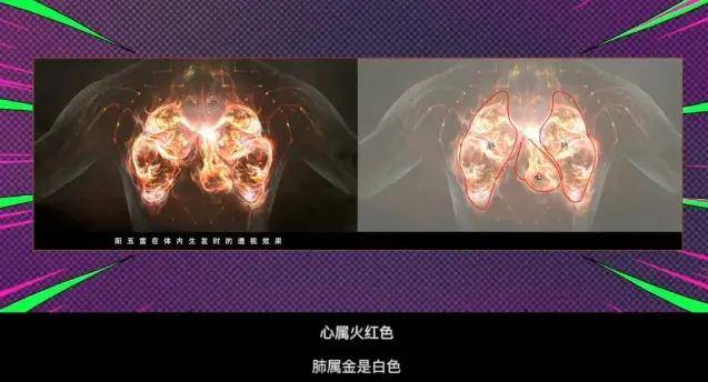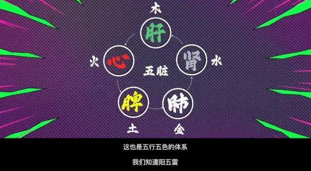 乌尔善认为,阳五雷来自心肺,心属火为红色,肺属金为白色,所以呈现出来,是红白。