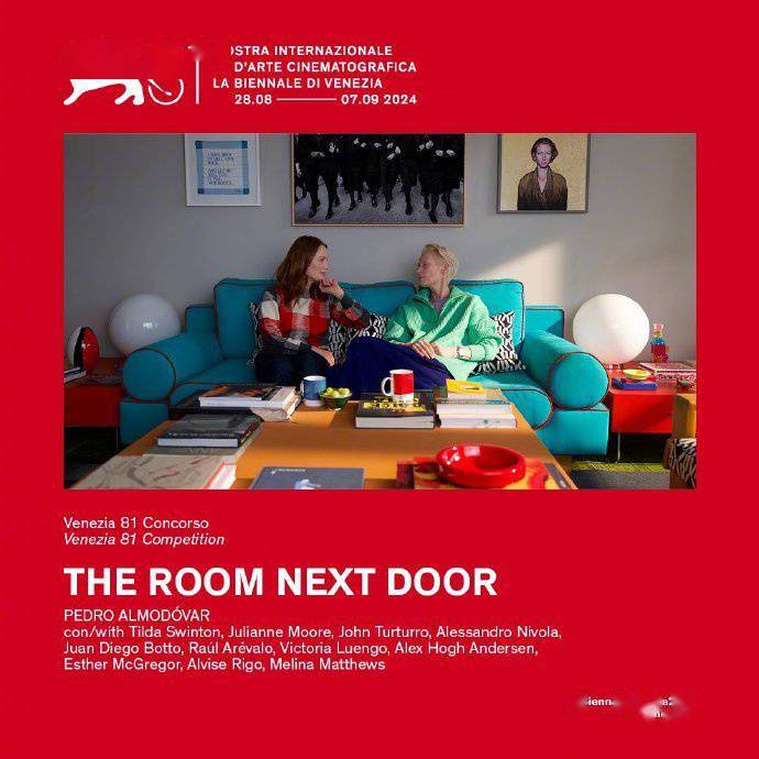 《隔壁房间》是佩德罗·阿莫多瓦继2021年后的又一力作,影片由、主演,讲述了因一场误会导致母亲与女儿的关系破裂,母亲的朋友目睹了这对母女的痛苦与裂痕。蒂尔达·斯文顿饰演的母亲是一位战地记者,朱丽安·摩尔则饰演她的朋友,是一位自传小说作家。