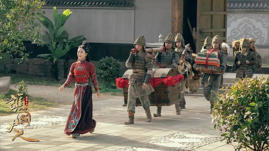 她自荐夫家的相亲戏份,完全是后现代自由女性的设定,独立的婚姻与爱情观,溢满银幕。在与冯保喜结伉俪,夫妻同心的小细节,《春江花月夜》唱段中尽显无疑。在平叛梁朝乱军,与逆臣对决中,一席戎装轻骑挽弓马上,更显巾帼英雄女侠风范,而电影中的古装造型,战争场面,显得有些拉跨。