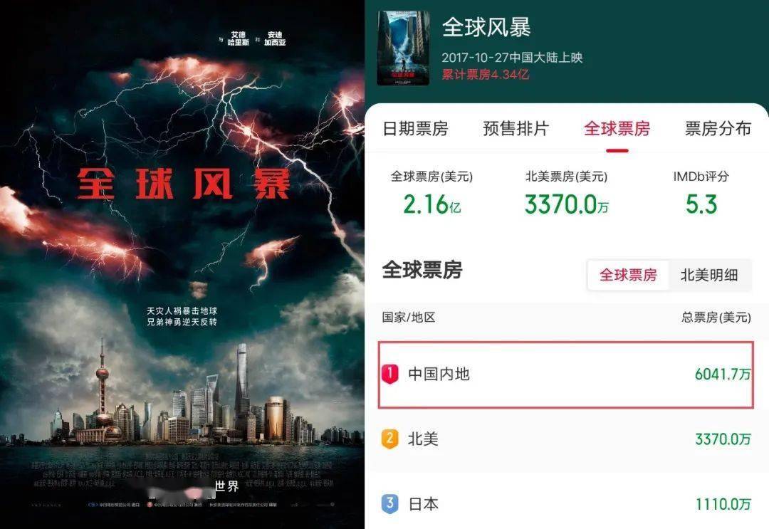 十年间,与《龙卷风》同类题材的影片有3部,分别是《不惧风暴》(2014)、《末日崩塌》(2015)、《全球风暴》(2017)。其中,《末日崩塌》取得内地票房6.28亿,豆瓣评分7.1;《全球风暴》取得内地票房4.34亿,超过北美,内地市场成为该片全球的最大票仓。可见,该类灾难片具有较大的市场潜力。