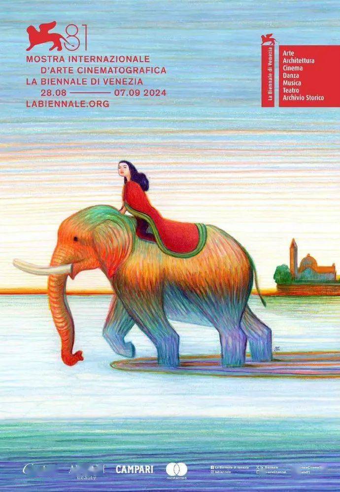 第81届威尼斯国际电影节主视觉海报公布,由意大利艺术家洛伦佐·马托蒂连续第七年设计官方海报。海报上,一头炫彩的大象,拖着一个身穿红色长裙的黑发女子走向潟湖。本届威尼斯电影节将于8月28日至9月7日在威尼斯丽都岛举行,国际评审团由法国女演员伊莎贝尔·于佩尔担任评委会主席,完整阵容将于7月23日公布。