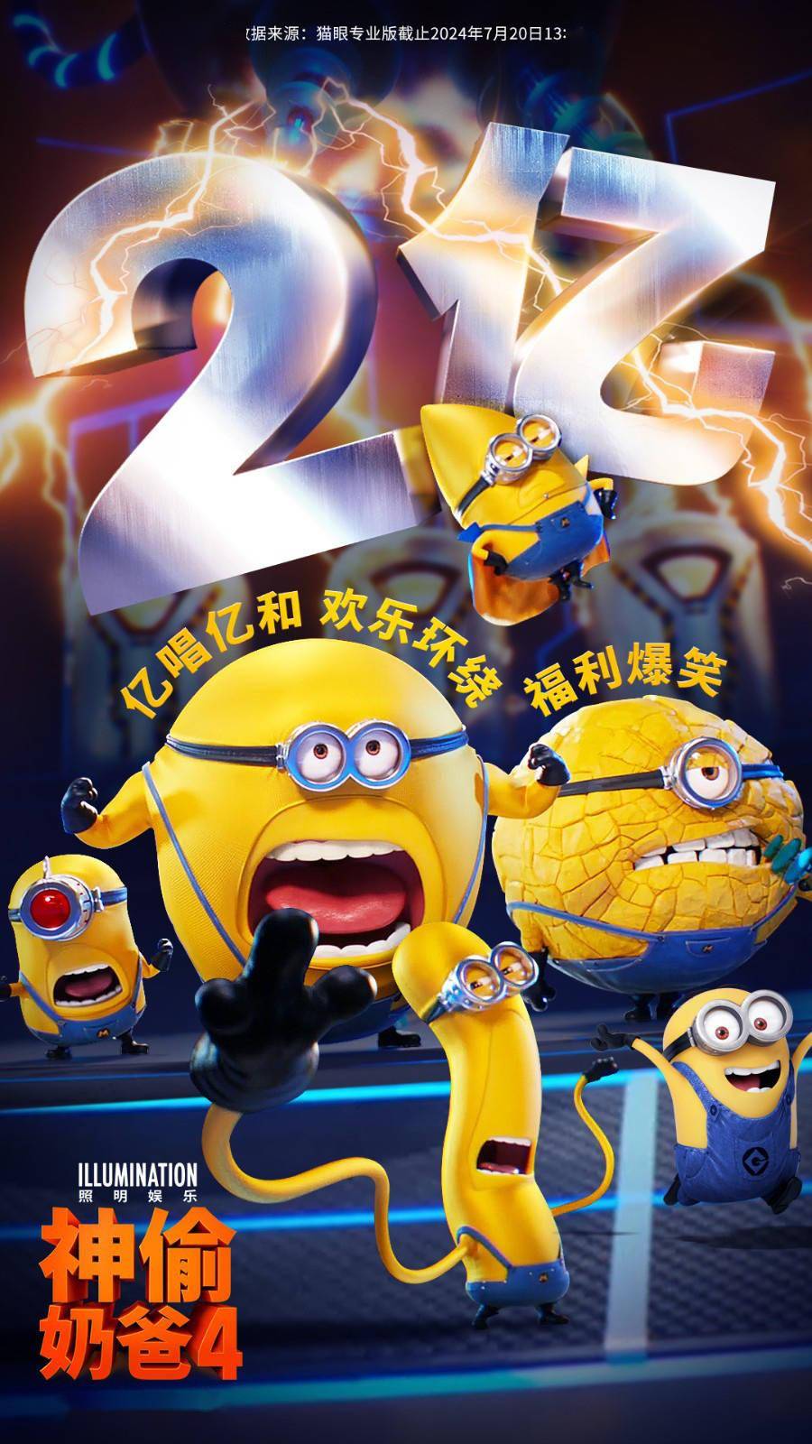 《神偷奶爸4》北美第三周周末票房劲收2380万美元,北美累计票房2.59亿美元,海外票仓劲收5200万美元,累计3.14亿美元。影片于7月12日在中国内地上映以来,票房已突破2亿。据外媒预测,该片全球总票房有望达到10-11亿美元!