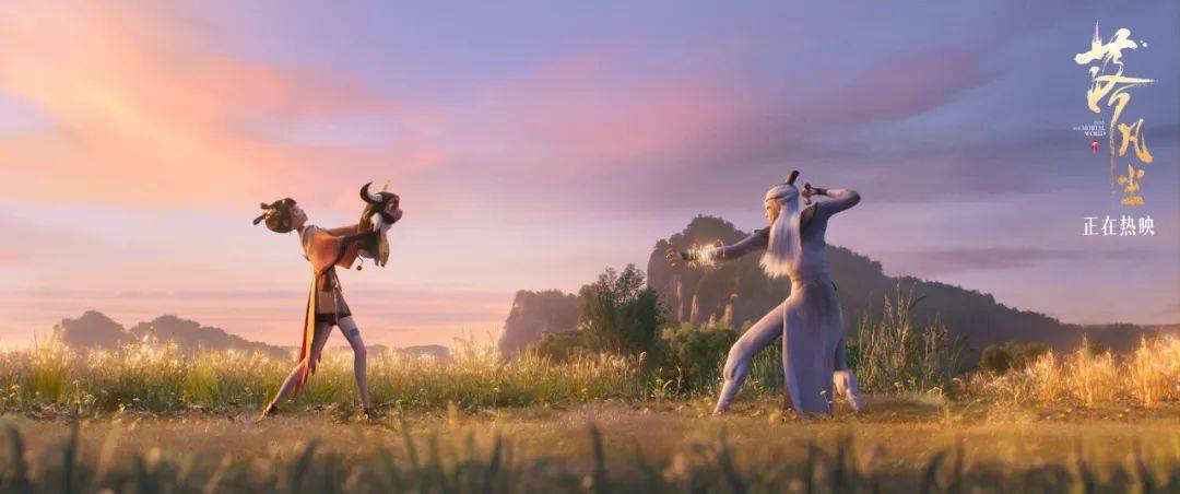 当然,从剧作上来讲《落凡尘》并非尽善尽美,但它的文戏的确称得上成熟工整,丝滑平稳地为观众讲述了一个创新的神话故事,相比于过往一些被冠以“黑深残”之称的神话改编,《落凡尘》显然更契合当下观众的审美与诉求。对国产动画电影而言,如果跑步前行过于激进,那徐行向前才是更好的选择。