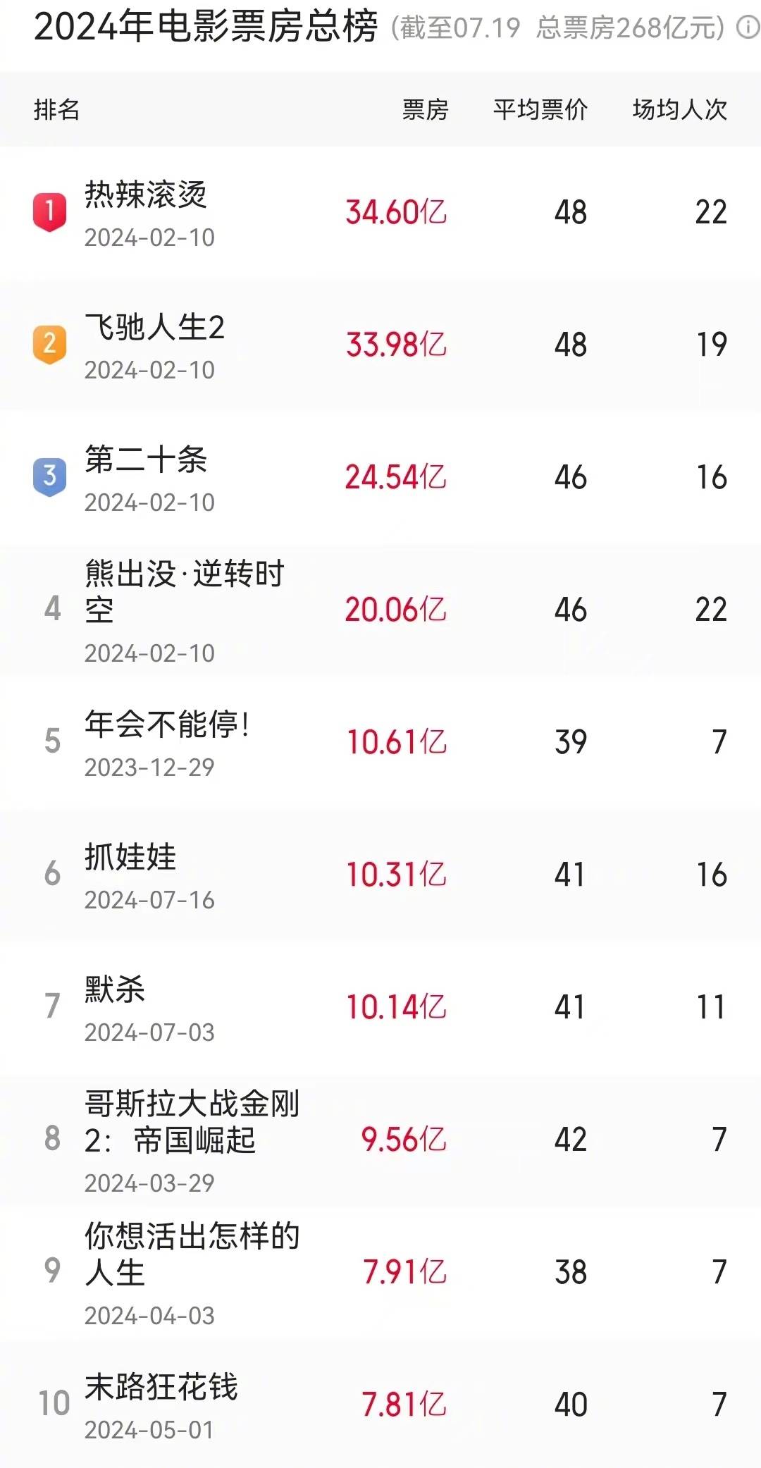 影片已连续7日蝉联日冠,单日票房均破亿。截至目前,累计总票房10.31亿(加预售),超越电影《默杀》(10.14亿)暂列2024年内地电影票房榜第六。