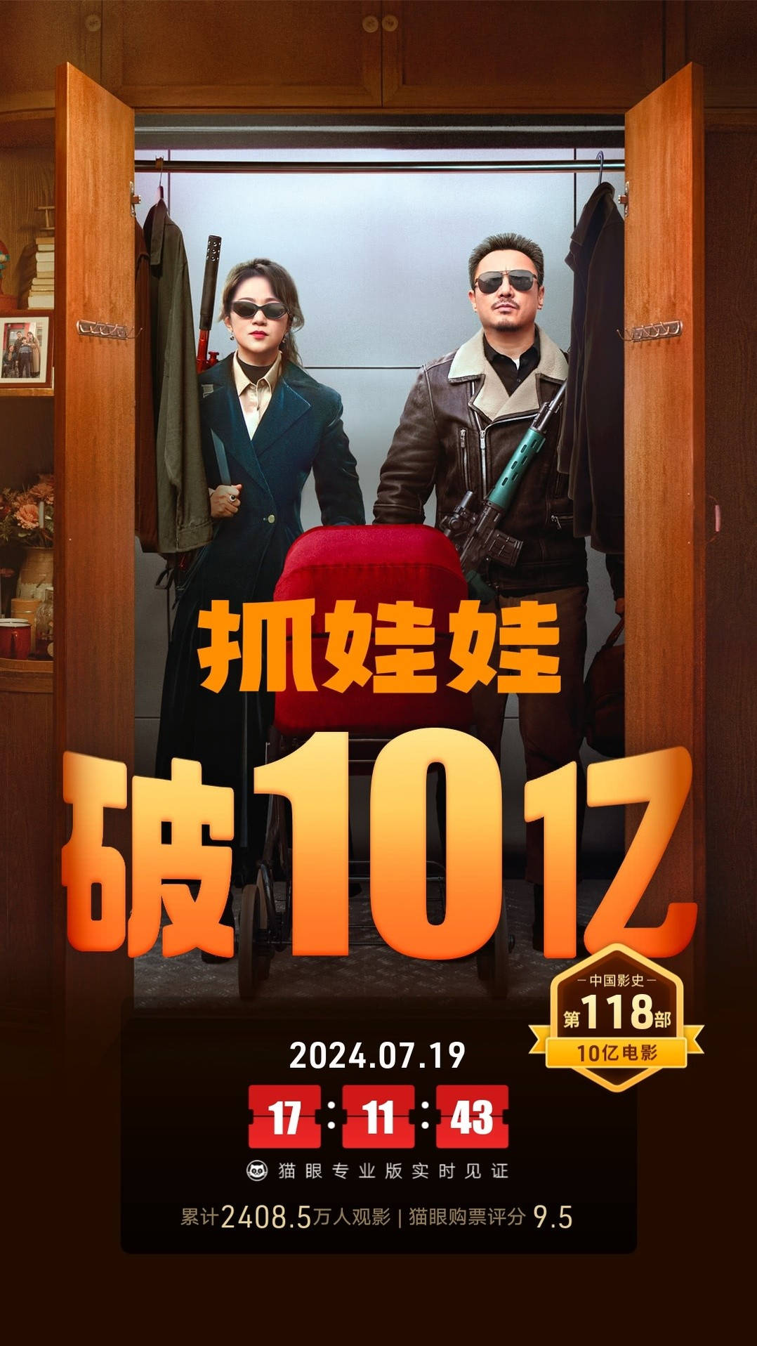 搜狐娱乐讯 据猫眼专业版数据, 截至7月19日17:11,闫非、彭大魔执导,沈腾、马丽领衔主演的暑期档喜剧电影《抓娃娃》上映第4天加点映,累计总票房破10亿。