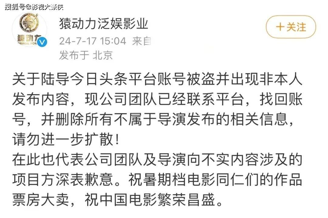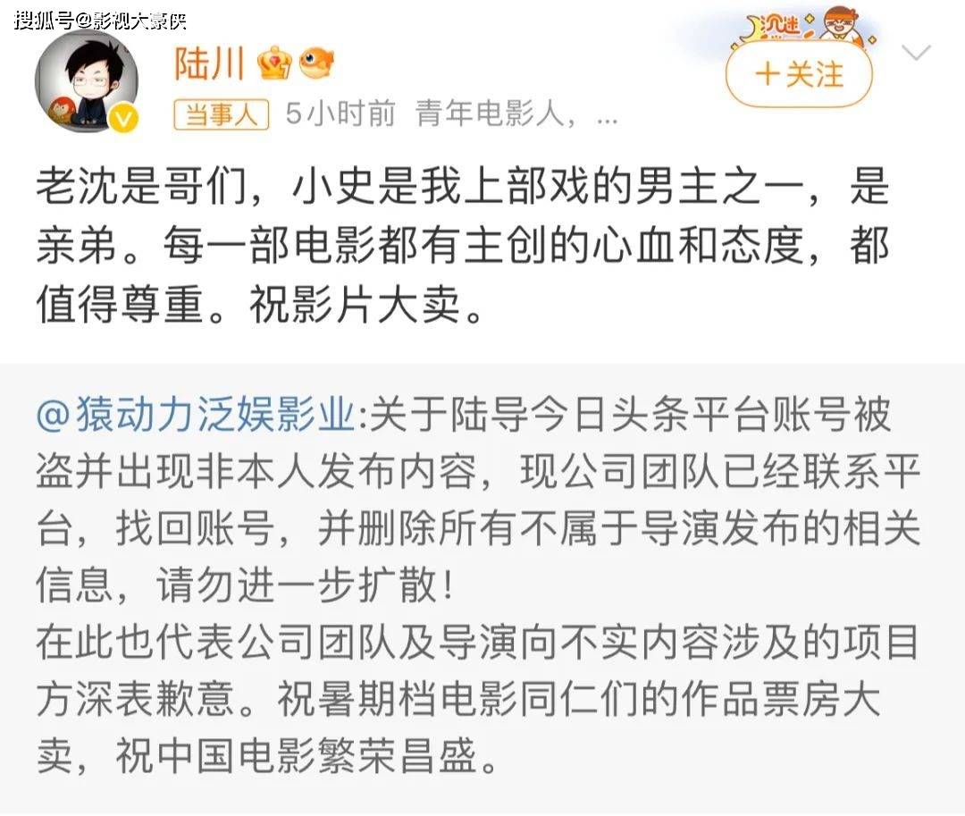 猿动力泛娱影业官微,当天下午跳出来辟谣,称陆川的账号被盗了,对于这个辟谣,网友们依然不买账