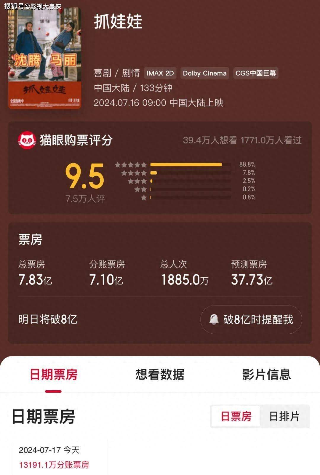 沈腾新电影《抓娃娃》正式上映第一天,就拥有了5.2亿的票房,直接把《默杀》挤到了第二名,不到一周票房已经7亿多,是今年暑假档票房冠军的一批潜力黑马。