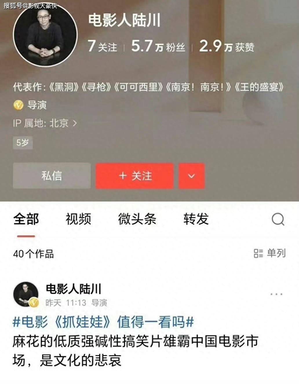 这短短的20多个字,无疑像是在平静的湖面投下了一枚重磅炸弹。陆川的批评言辞尖锐,迅速在网络上引发了广泛的讨论和热议。