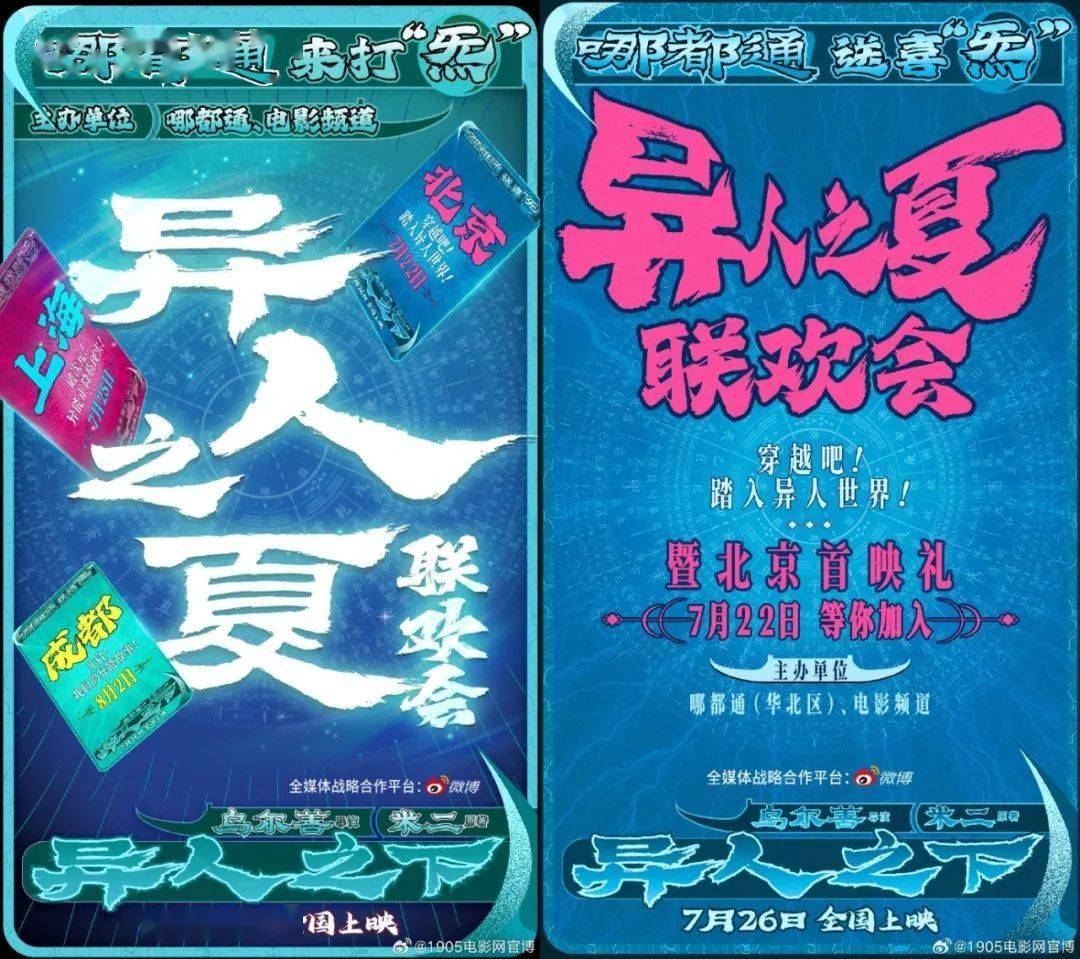 电影《异人之下》将携手电影频道开启“异人之夏联欢会”,届时,电影频道将全程直播。活动将于7月22日、7月25日、8月2日分别在北京、上海、成都举行。首站北京首映现场,《异人之下》全阵容将首次亮相,一比一复刻妆容造型,高能异人高质乐队同台飙技,武术花招现场表演等。影片将于7月26日全国上映。