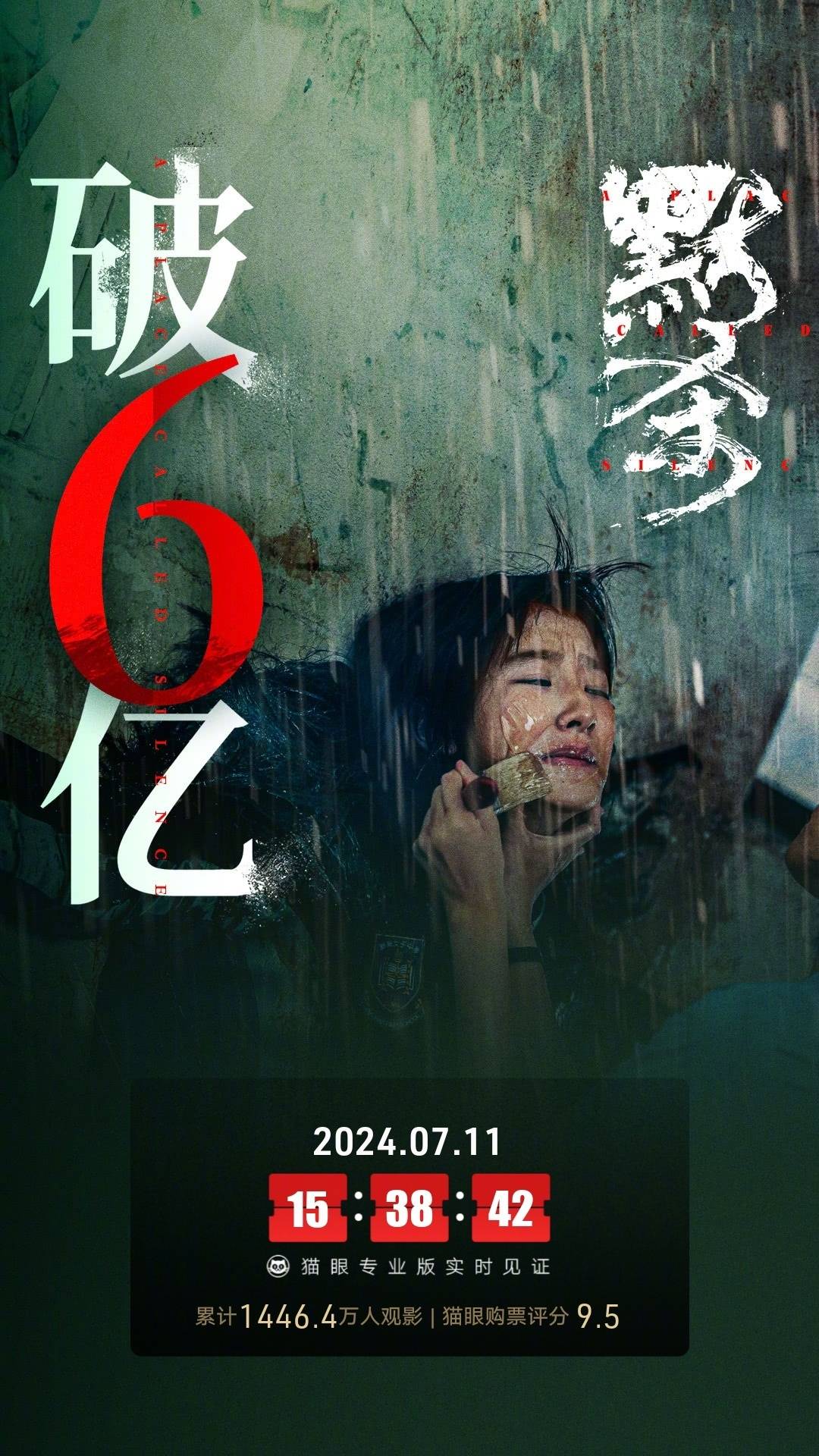 悬疑罪案电影《默杀》上映第9天累计票房破6亿 已连续8天夺得内地票房日冠