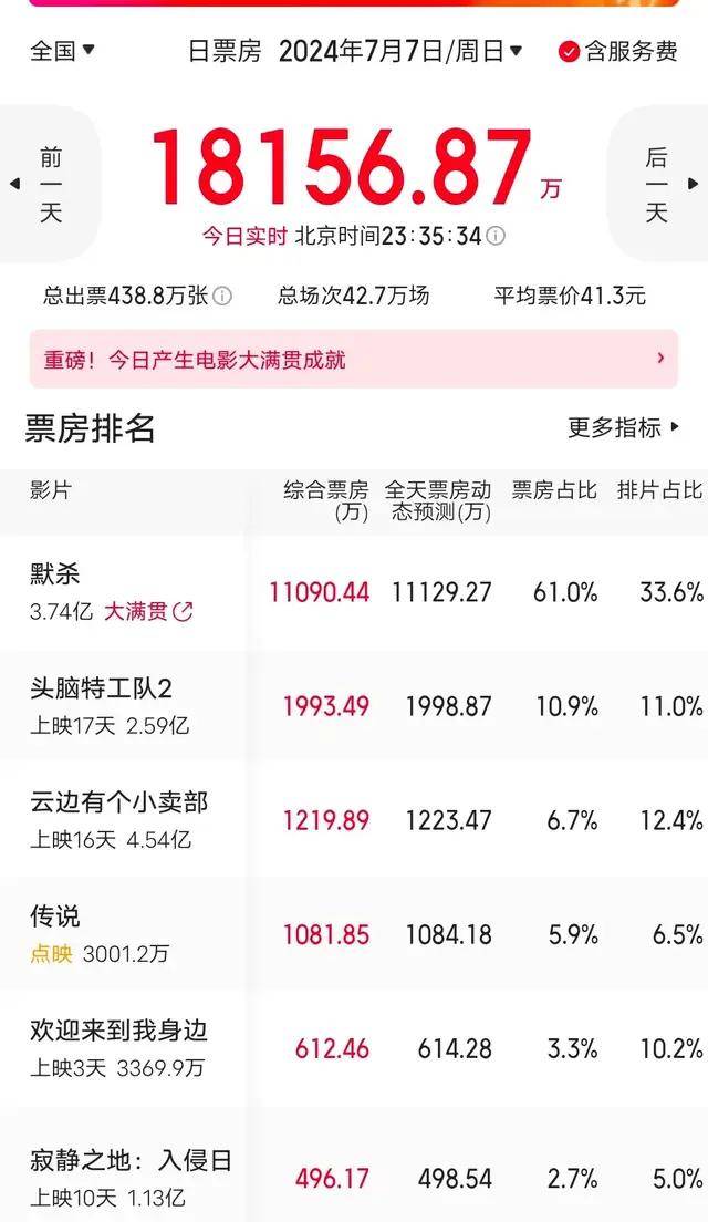 讲述了校园霸凌的电影《默杀》上映6天 ,总票房破4亿,时隔66天,电影市场重新有了单日票房破亿的作品,以33.6%的排片拿下了61%的占比,成为今年暑期档第一爆。另外,电影《抓娃娃》宣布于13日点映,16日公映。不仅正面辟谣了《抓娃娃》撤档,还变相提前和大家见面。