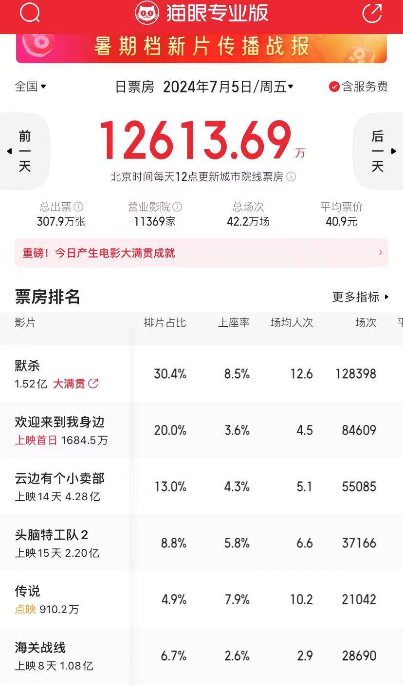 排片占比高出《云边有个小卖部》7%,结果上座率还低了0.7%,这说明什么,电影没有吸引力,观众不买单。暑期档电影质量似乎有点堪忧,几乎没有什么高品质的,《云边有个小卖部》口碑也很差,多个明星演出,好歹现在票房破4亿,而被看好的《默杀》排片占比高,票房也给力,但柯汶利这部电影似乎口碑也不是很好。