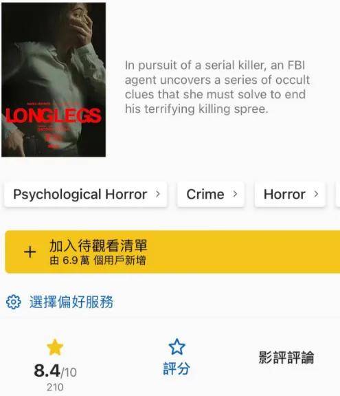 而在imdb平台,也同样收获了出色的口碑,被观众打出了8.4的高分,无论是专业媒体,还是普通观众,对这一部恐怖新片都给出了一致好评。