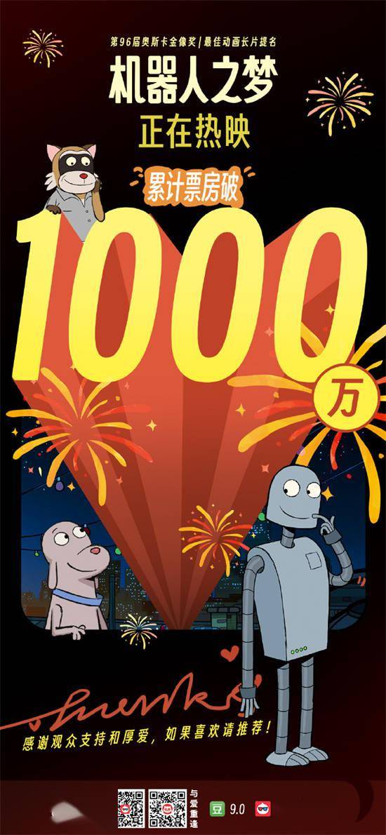1905电影网讯电影《机器人之梦》正在热映中。截至2024年6月30日,电影《机器人之梦》内地票房突破1000万元。电影官方发布了票房海报以示庆贺,并宣布电影秘钥将延期至8月7日。
