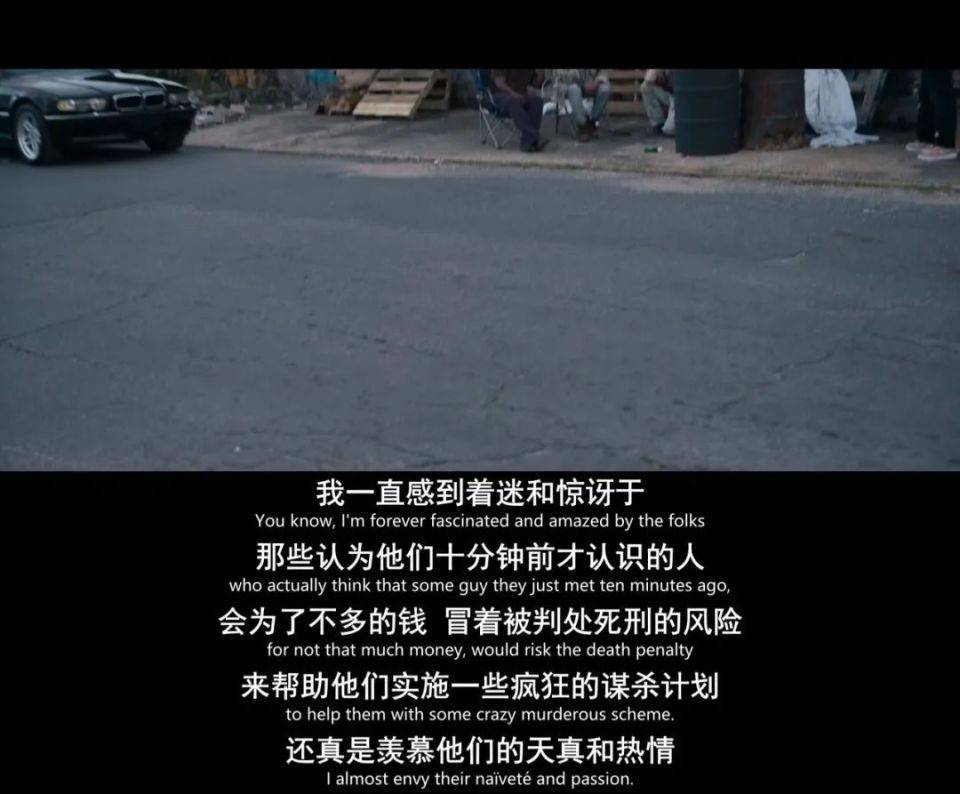 更荒诞的是,一个并不相信世上存在“杀手”、并不理解有什么事值得谋杀的主角,在影片最后为了保护自己的情人,下了一次杀手。