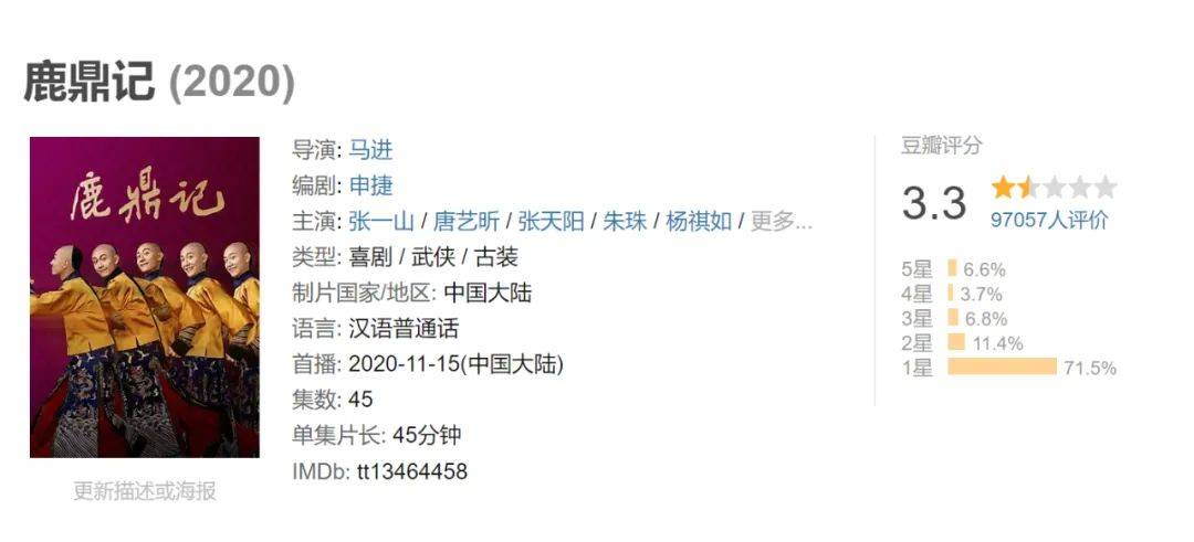 近十年来,仙侠崛起、武侠式微,金庸IP屡拍屡扑,屡扑屡拍。除了2017年杨旭文、李一桐主演的《射雕英雄传》外,其他金庸剧的口碑都不尽如人意,2018版《新笑傲江湖》评分2.5,2020版《鹿鼎记》评分3.3,2021版《天龙八部》评分3.4。