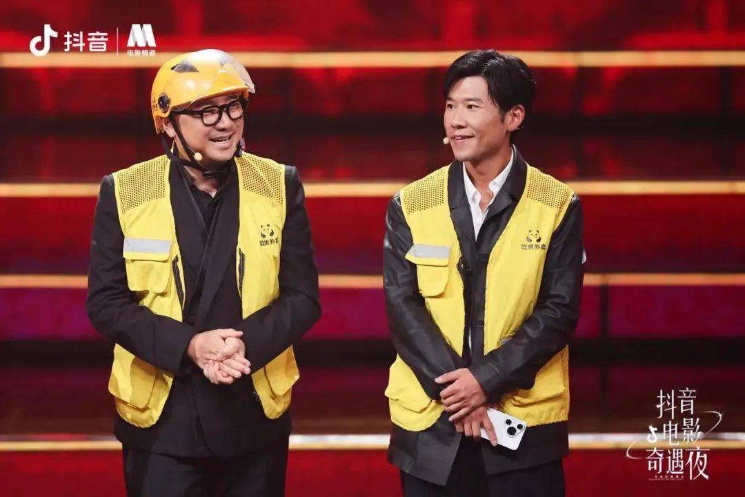一通突如其来的电话,中断了台上胡先煦的主持。定睛一看,原来是“外卖员”徐峥、王骁为观众们送来了新片《逆行人生》的外卖。