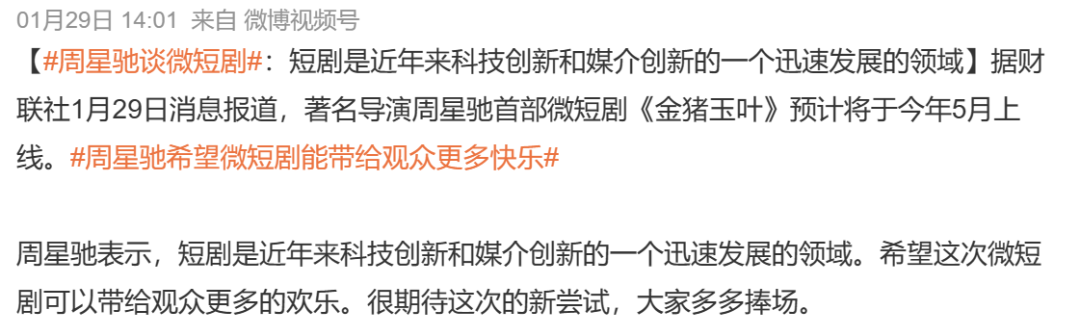 今年年初就有相关报道,周星驰决定踏足短剧领域,干一票大的。