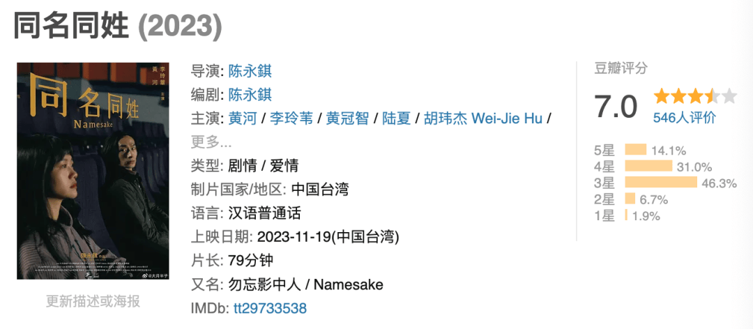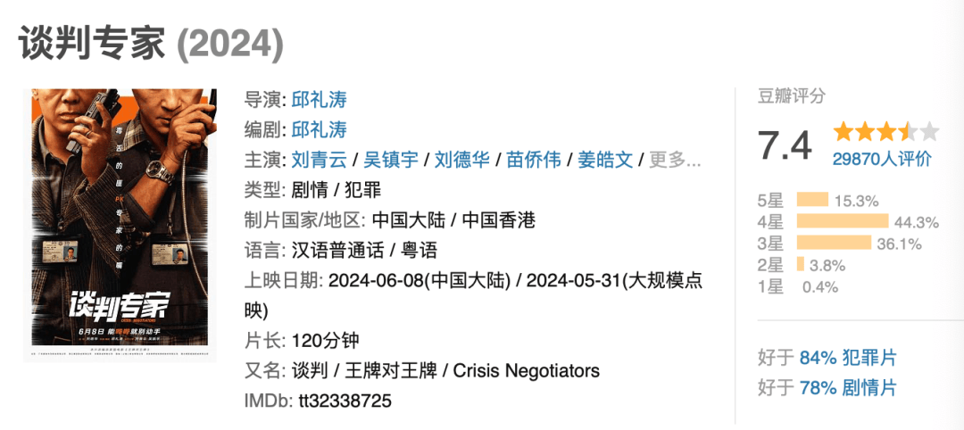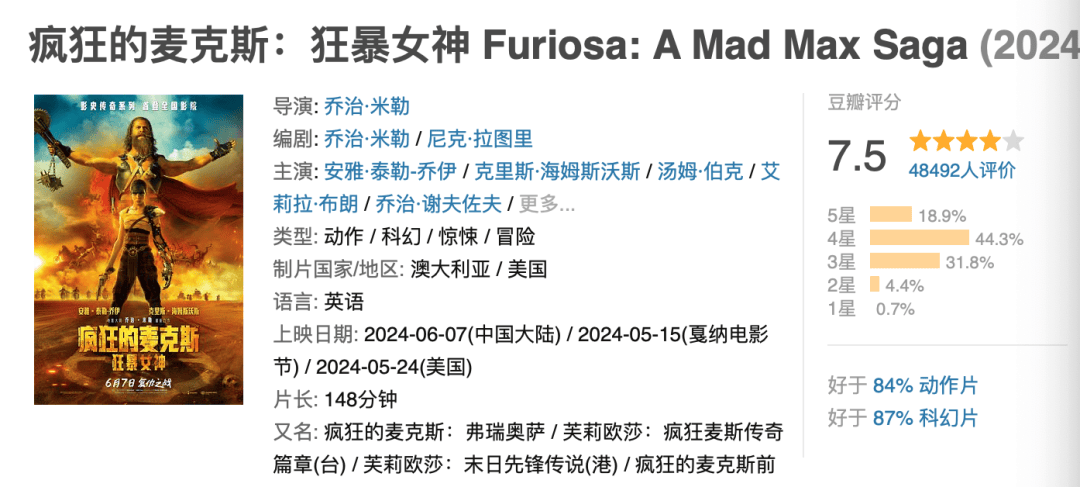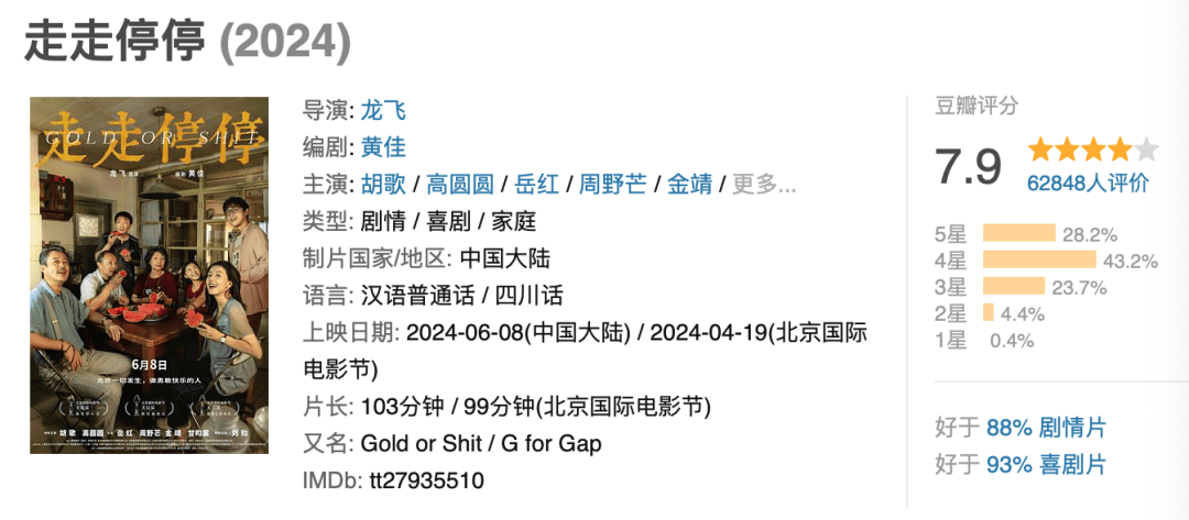 同样是一部正在上映中的院线片,现在仍有7.9分,在国产院线片里,这个评分就算很不错了。