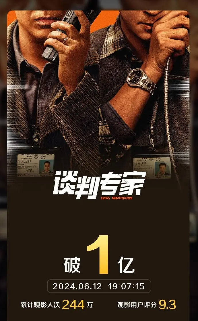 搜狐娱乐讯 6月12日,据灯塔专业版数据显示,影片《谈判专家》票房突破1亿! 本片由刘德华监制、邱礼涛编剧并执导,刘青云、吴镇宇领衔主演。