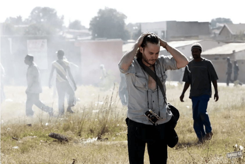 能看到的只是,他们穿梭在枪林弹雨中,面无表情地拍照。