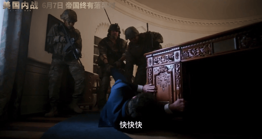 而且,别忘了,被虚化的背景,是被放大加粗的片名「美国内战」。