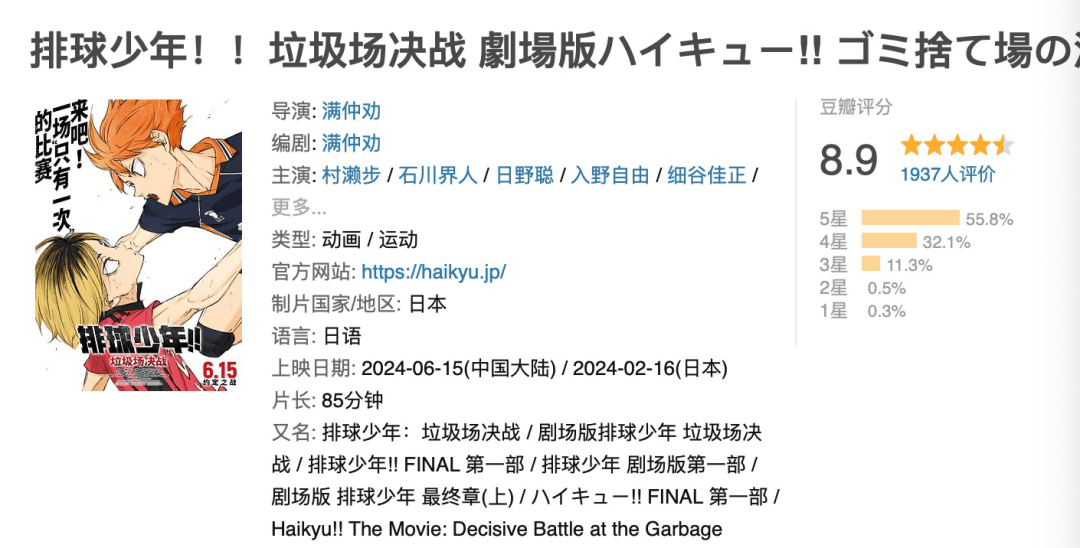 我是很好奇这部在国内的票房表现的。毕竟,之前的番号称是“灌篮”之后最强运动番,起码人气确实做多超强了,现在吃谷的朋友,谁还不知道蓝锁和小排球的热度啊。