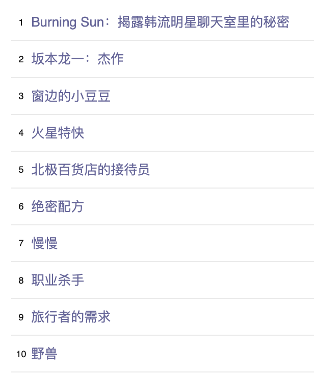 最后,还是例行附上一周豆瓣口碑榜的完整榜单: