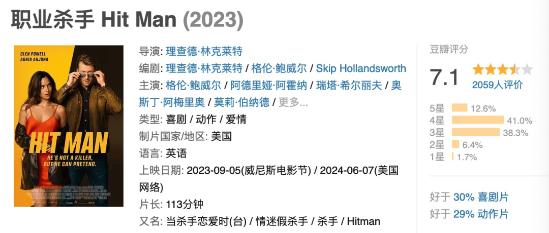 《Hit Man》由林克莱特和鲍威尔共同创作,改编自一个令人难以置信的真实故事,是一部巧妙描写身份的存在主义喜剧。