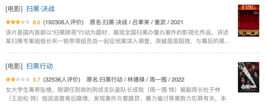 我也不知道这些电影是不是属于同一系列,还是属于同一个项目KPI下面的,也有可能相互之间没什么关系,只是都想蹭一个「扫黑」流量。