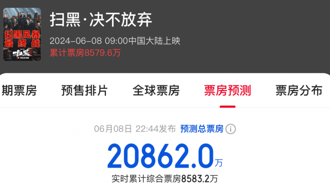 根据最新票房统计,目前票房榜第一的是《扫黑·决不放弃》。