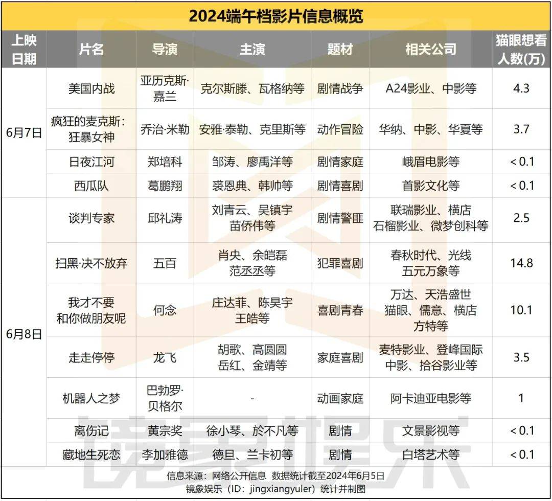 从这个角度来看,今年端午档集结11部影片便不难理解了,且影片覆盖的多元题材,也在受众市场呈现出相对更明显的区分。