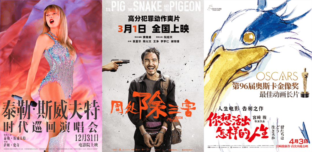尤其是今年,这一趋势更为明显,从《泰勒·斯威夫特:时代巡回演唱会》到《周处除三害》,从《你想活出怎样的人生》到《哥斯拉大战金刚2:帝国崛起》,多元化的引进内容为刚刚迈入第四个十年的引进片市场打下了良好开端。