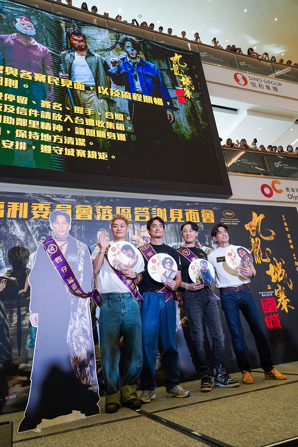 动作电影《九龙城寨之围城》近日在香港票房突破9000万港币,仅次于破亿港币的《毒舌律师》,成为香港影史本土片票房榜亚军。为此几位男主角林峯、刘俊谦、胡子彤、伍允龙等出席城寨福利委员会落区答谢见面会。