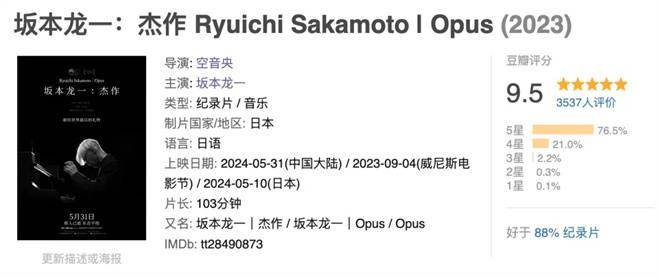影片由坂本龙一之子空音央执导,曾亮相2023年威尼斯国际电影节非竞赛单元并在今年北影节期间展映,收获了9.5分的超高评分。随着电影正式公映,也将有更多影迷、乐迷得以在大银幕与大师话别。