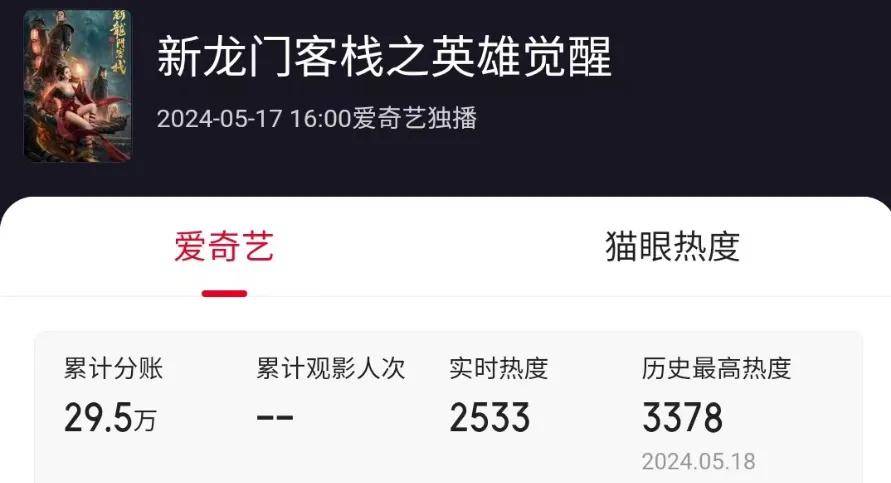 如今刚过去一个多月,又一部翻拍的《新龙门客栈》上线,美其名曰《新龙门客栈之英雄觉醒》。